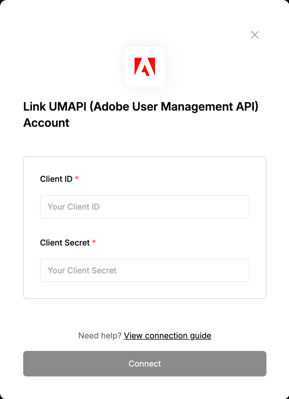 Step 2: Enter credentials in the Connect UI