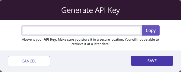 1. Copy and securely store your API Key – this is separate from your password and will be used for API authentication.