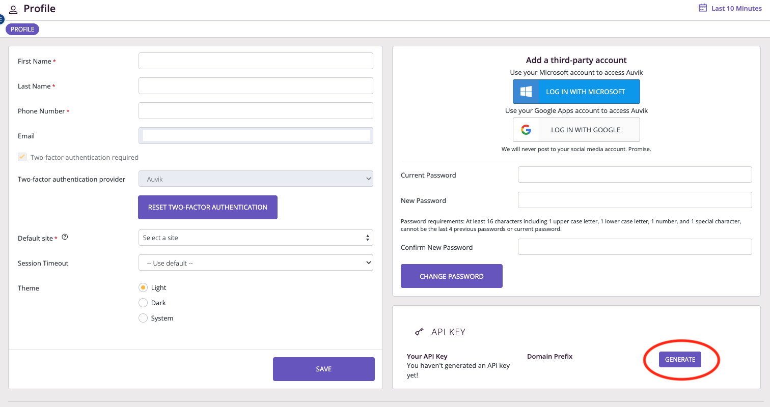• Optional: create a new, separate Auvik account within your organization to hold your API Key so that this key is not tied to any one individual. Auvik documentation refers to this as setting up a “service account.”