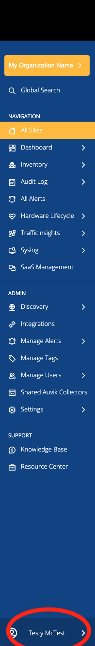 2. Scroll to the bottom of the left-hand nav. Look for your account’s name and click to view and edit your profile.