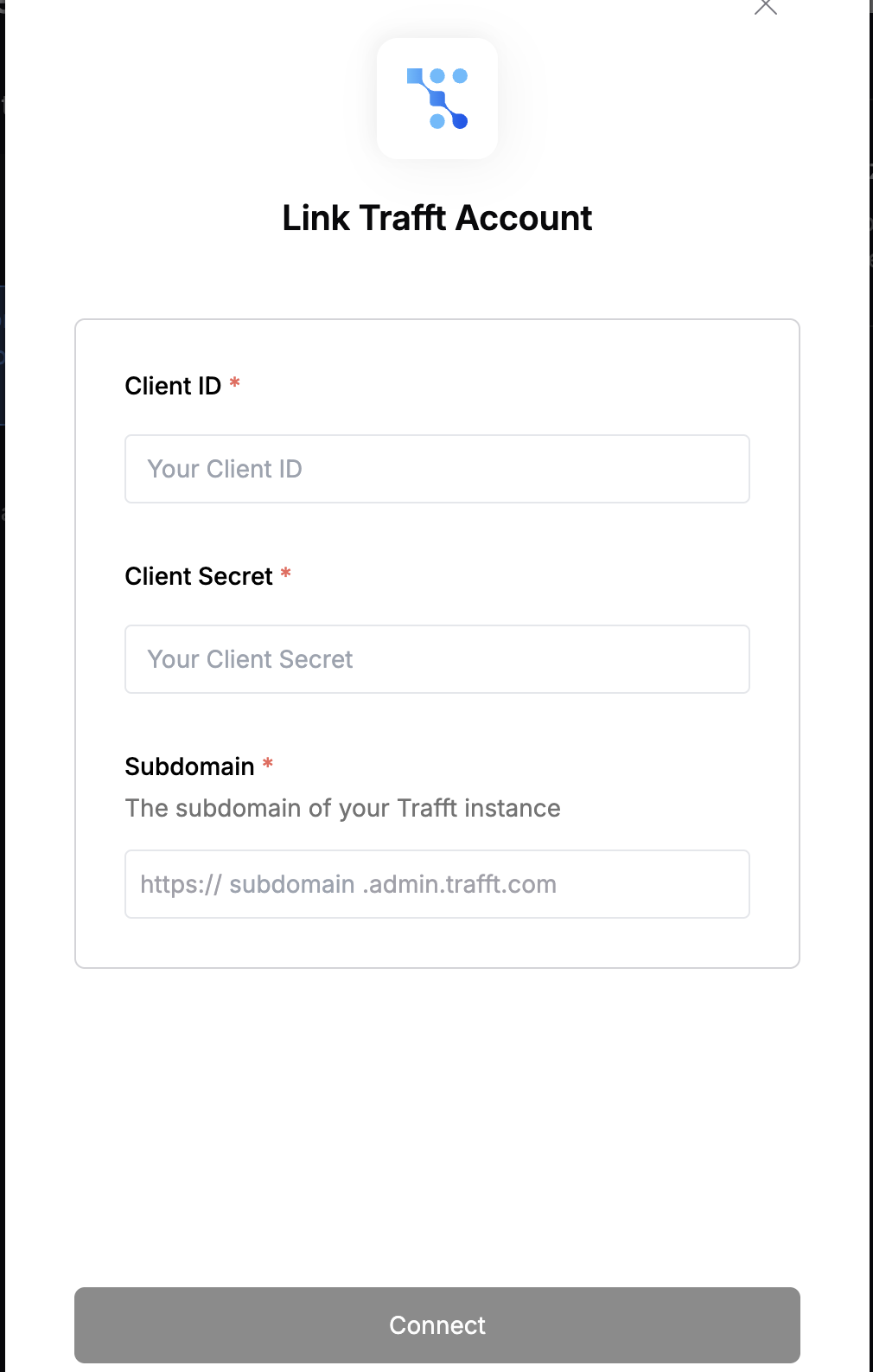 Step 3: Enter credentials in the Connect UI